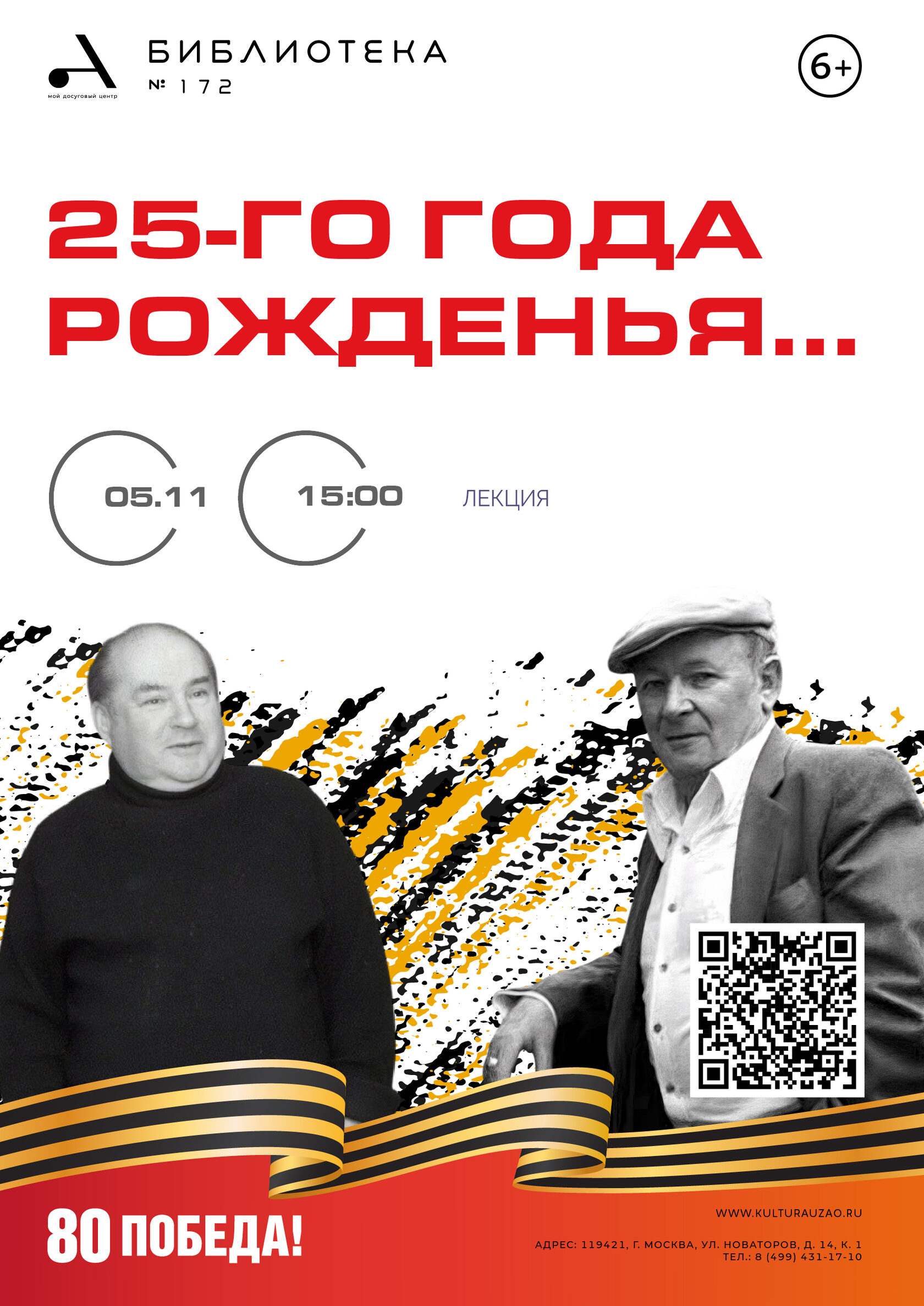 «25 лет рожденья…» — так называется лекция, посвященная 100-летнему юбилею выдающихся поэтов Константина Ваншенкина и Евгения Винокурова, которые были ветеранами Великой Отечественной войны. Эти поэты представляли последнее поколение, мобилизованное в соответствии с возрастом для участия в судьбоносных боях — поколение, для которого война стала личной трагедией и испытанием. Как писал Евгений Винокуров: «Вчера мы писали диктанты..., а утром уже интенданты нам выдали сапоги». Для них фронтовые будни начались в 1944 году, и именно с этого времени они переживали все тяготы и испытания войны. Для Ваншенкина и Винокурова война стала неотъемлемой частью их жизни: фронтовая дружба, потеря товарищей, атаки, ранения, взятие Берлина — все эти события оставили неизгладимый след в их душе и творчестве. Оба поэта писали о Великой Отечественной войне искренне, без казенного патриотизма и пафоса, что делает их стихи особенно трогательными и проникновенными. Их поэзия отражает не только героизм и страдания, но и внутреннюю боль, память и благодарность за подвиг тех, кто защищал Родину. Именно эта искренность и честность делают их стихи по-настоящему живыми и актуальными, позволяя слушателю почувствовать глубину пережитого. Эта лекция позволит услышать и понять особое звучание их поэзии, а также вспомнить о важности сохранения памяти о героях и их подвигах.