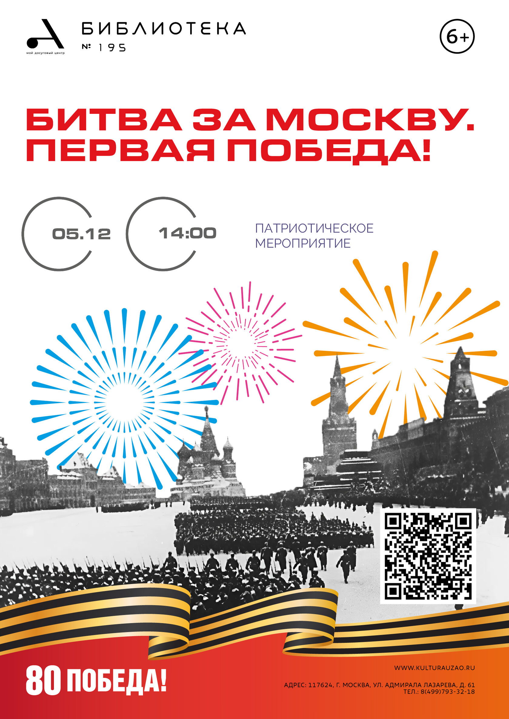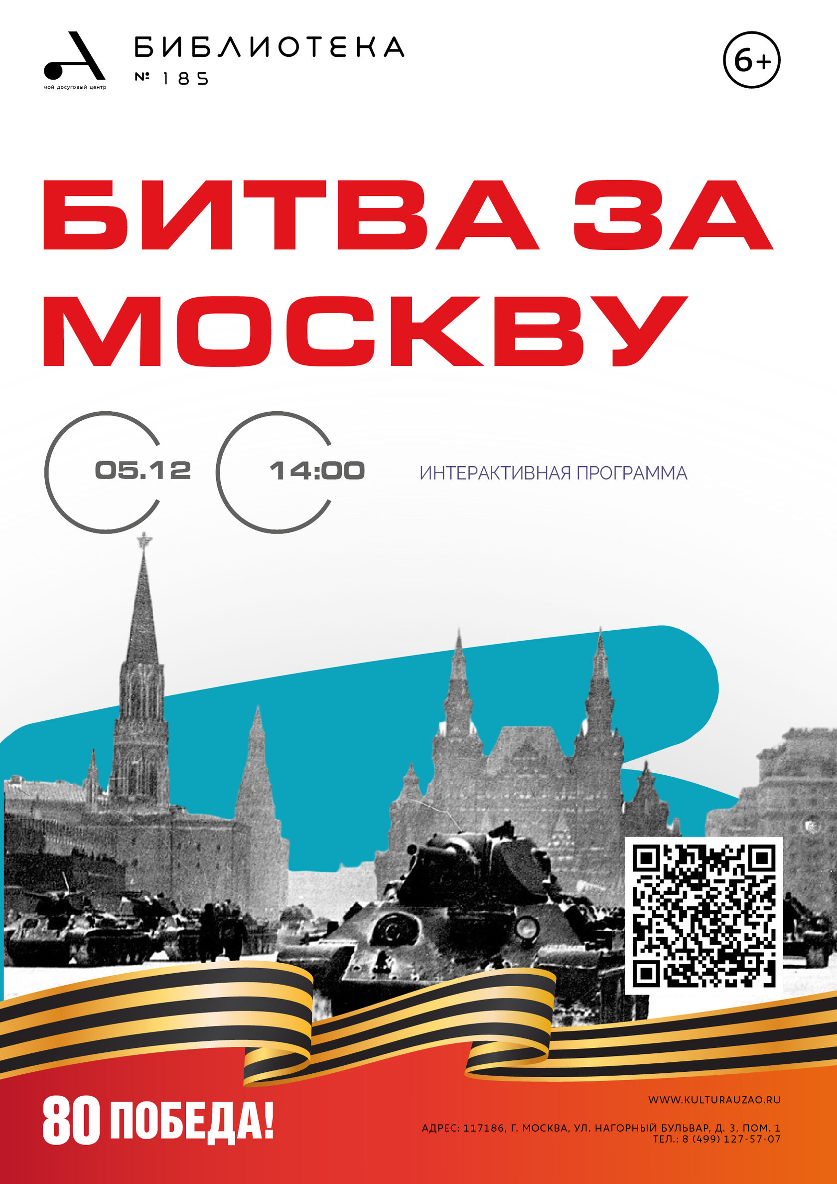 Есть в календаре такие даты, которые навечно вписаны в героическую летопись нашей страны. И одна из них — это день началась контрнаступления советских войск против немецко-фашистских войск в битве под Москвой. 5 декабря 1941 года стало переломным моментом в истории Великой Отечественной войны, нашей страны, всего мира. В этот день советские войска перешли в контрнаступление под Москвой. Победа под Москвой ознаменовала начало коренного поворота в войне. К этой дате в библиотеке № 185 состоится мероприятие, посвященное этой важной странице Великой Отечественной войны. Сотрудники библиотеки расскажут ребятам о ходе и итогах этой битвы, о героических подвигах тех, кто принимал в ней участие. В заключение мероприятия ребята, разделившись на две команды, и сделают макеты, где воспроизведут события тех лет.
