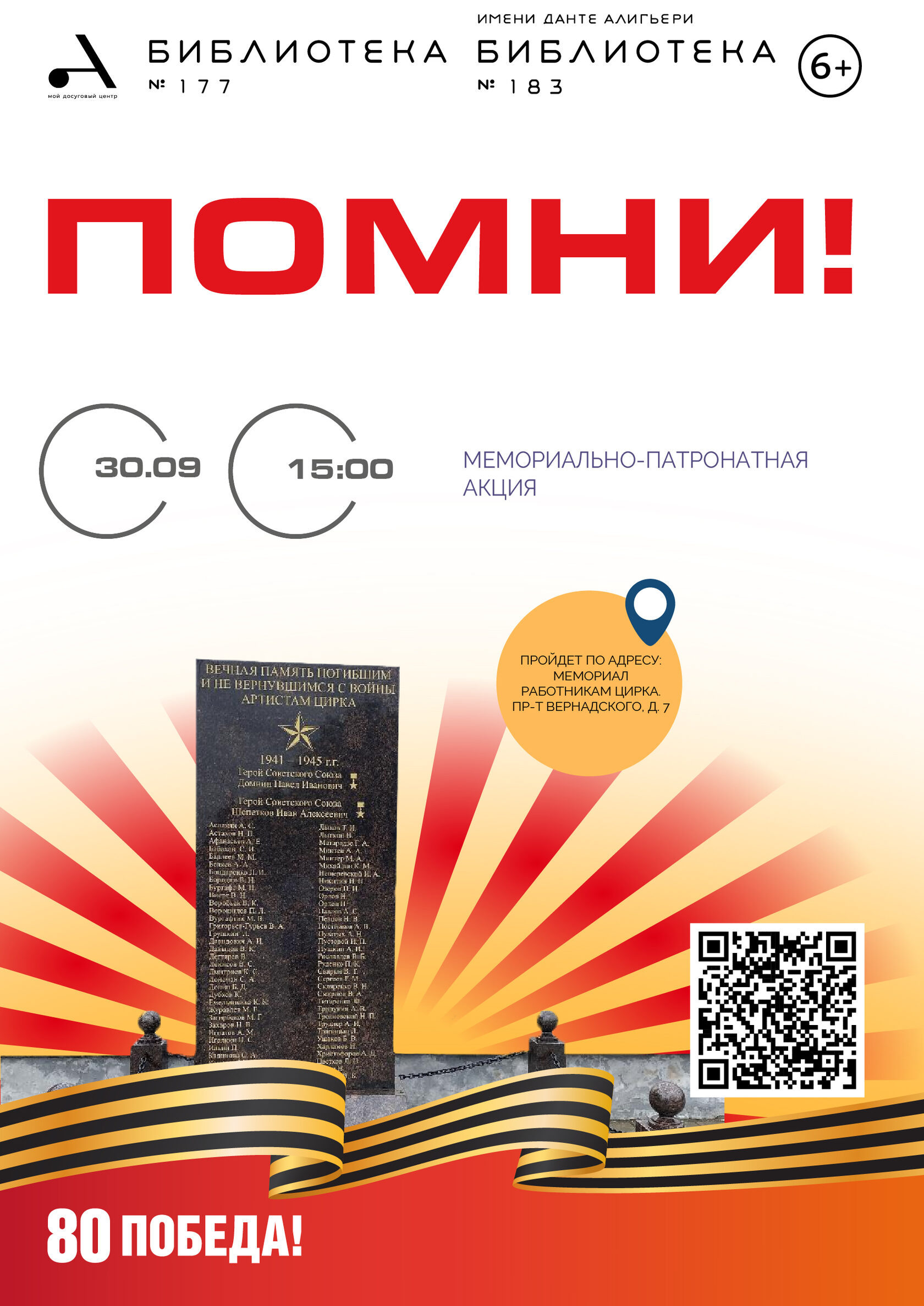30 сентября 2025 года сотрудники Детской библиотеки № 177 и библиотеки № 183 им. Данте Алигьери проведут трогательную мемориально-патронатную акцию у памятника артистам цирка, погибшим в годы Великой Отечественной войны. Это мероприятие станет важным событием для всех, кто желает выразить свои уважение и почтение к тем, кто отдал свои жизни за свободу и мирное будущее нашей страны. Мы приглашаем всех желающих присоединиться к нам в этот день, чтобы вместе почтить память солдат минутой молчания и возложить цветы к памятнику. В рамках акции сотрудники библиотек прочитают вслух трогательные стихи, посвященные бойцам, сражавшимся за мирное небо над нашей головой. Это будет не просто дань памяти, но и возможность поразмышлять о мужестве и подвиге тех, кто боролся за наше будущее. Ваша поддержка и участие помогут сохранить память о героях и передать следующие поколениям значимость их подвига.