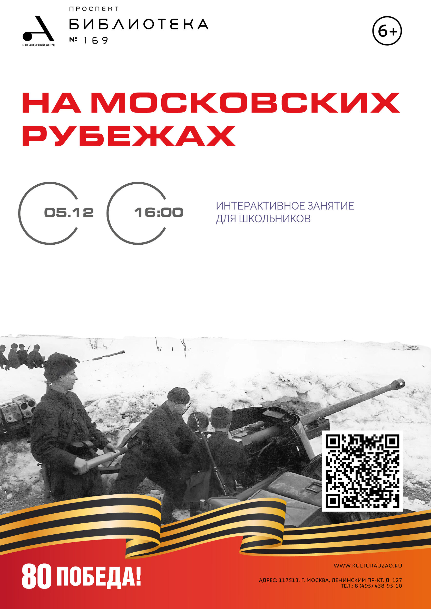 5 декабря в библиотеке 169 "Проспект" состоится интерактивное занятие для школьников, посвящённое Дню начала контрнаступления советских войск под Москвой. Это познавательное мероприятие погрузит участников в атмосферу важнейшего исторического события — начала зимней контрнаступательной операции 1941 года. В ходе занятия школьники смогут узнать о героических подвигах советских солдат, стратегических решениях и трудностях, с которыми столкнулись защитники столицы. Мы пройдёмся по ключевым моментам битвы за Москву с помощью мультимедийной презентации, обсудим значимость этого события для истории страны, его важность в ходе Великой Отечественной войны. Это мероприятие поможет молодому поколению лучше понять исторические события, их значение и уроки для современности.