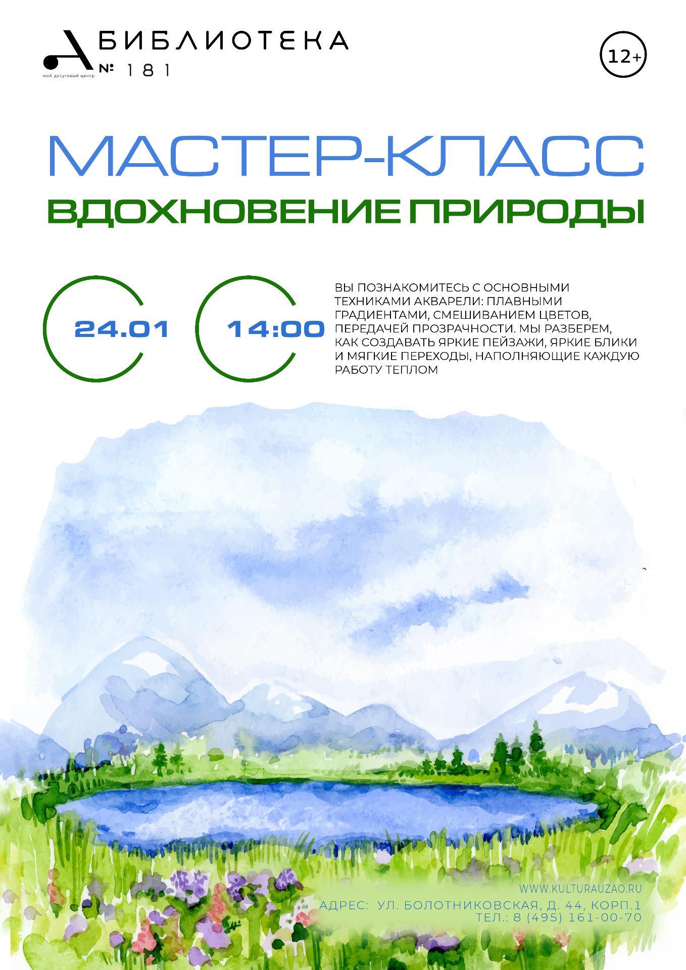 Библиотека №181 приглашает вас на мастер-класс "Вдохновение природы". На этом мастер-классе вы познакомитесь с основными техниками акварели: плавными градиентами, смешиванием цветов, передачей прозрачности. Мы разберем, как создавать яркие пейзажи, яркие блики и мягкие переходы, наполняющие каждую работу теплом. Самое главное – это атмосфера творчества, общения и хорошего настроения! Вдохновляйтесь природой и создавайте собственные шедевры! 🏡Наш адрес: ул. Болотниковская, д. 44, корп. 1 ☎8 499 121-30-92