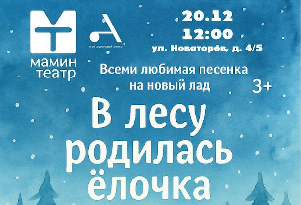 Спектакль состоится в нашем любимом зале Обручевского района 20 декабря в 12.00 по адресу: ул. Новаторов, д. 4/5.